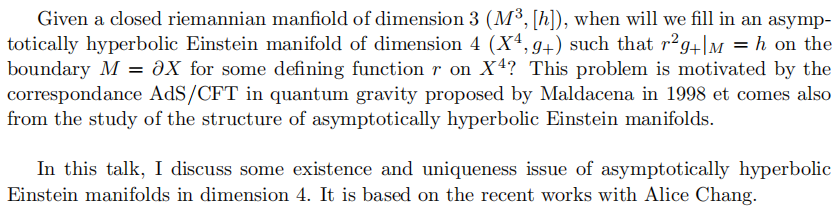 题 目:Conformal fill in by Poincar´e-Einstein metrics in dimension 4