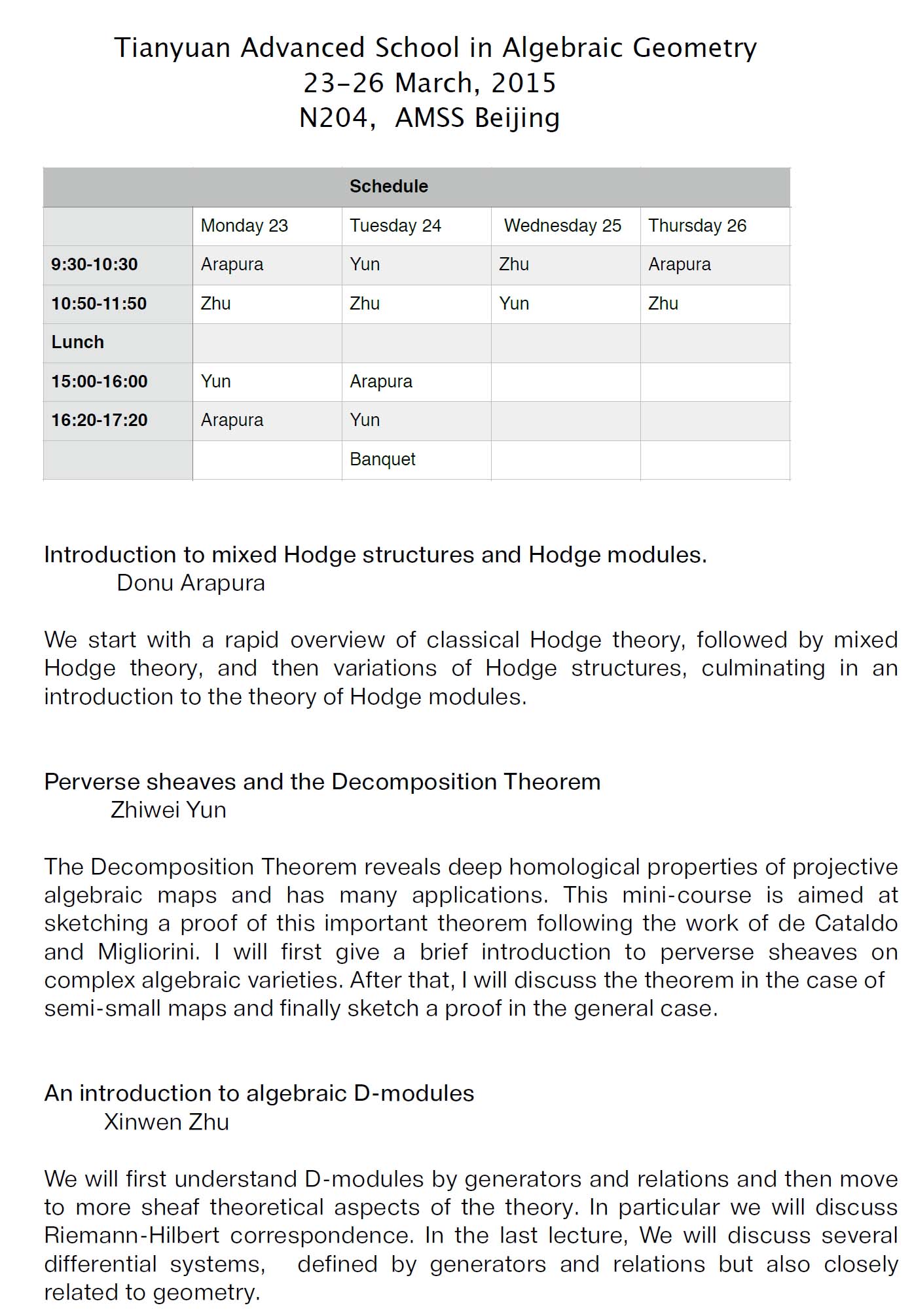 2015 年天元高级研讨班”代数几何模空间”会议